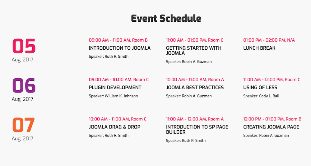 The Event Schedule addon for Eventum has got 2 more layouts: Horizontal and Vertical. So now you have 4 layouts in total. Let’s have a look at the new ones.