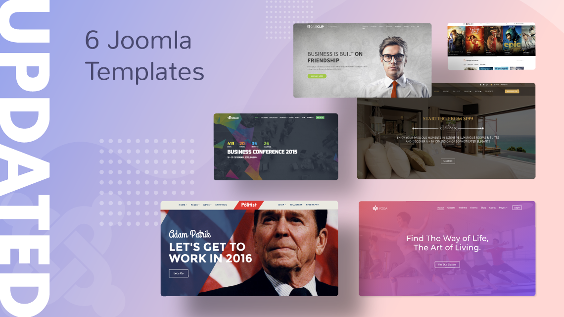 Are you using any of the Joomla templates from Resort, Eventum, OneClip, Yoga, Politist, and Moview? Update your template without any delay to enjoy those improvements. Stay with us for more.