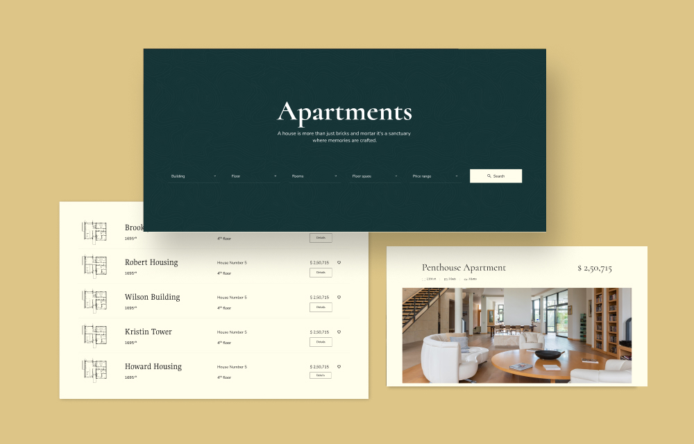 Celestia presents an ideal format for presenting your properties or apartments, including pricing for clear and concise communication.