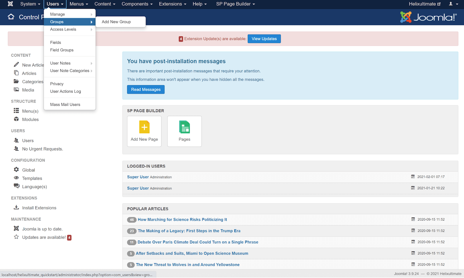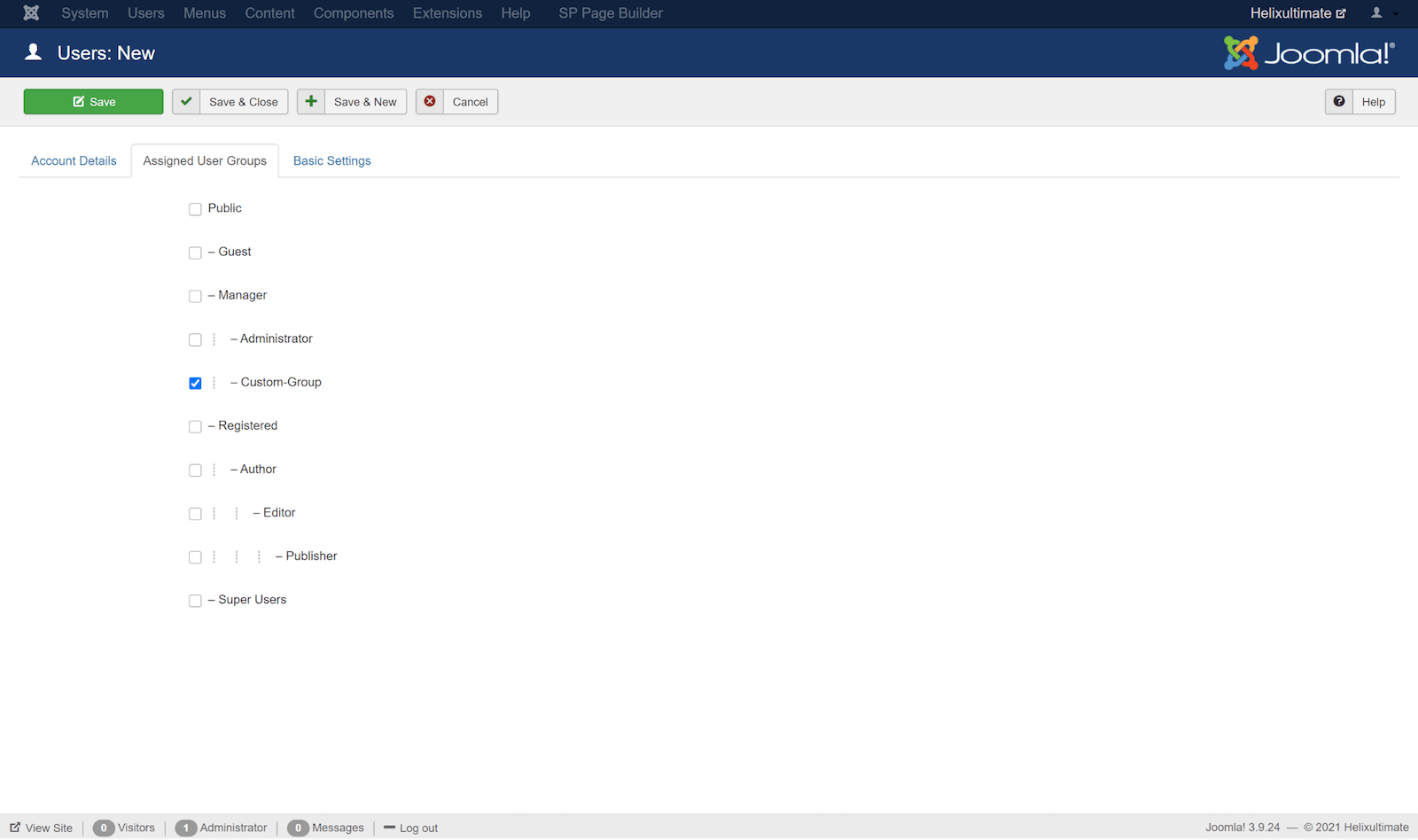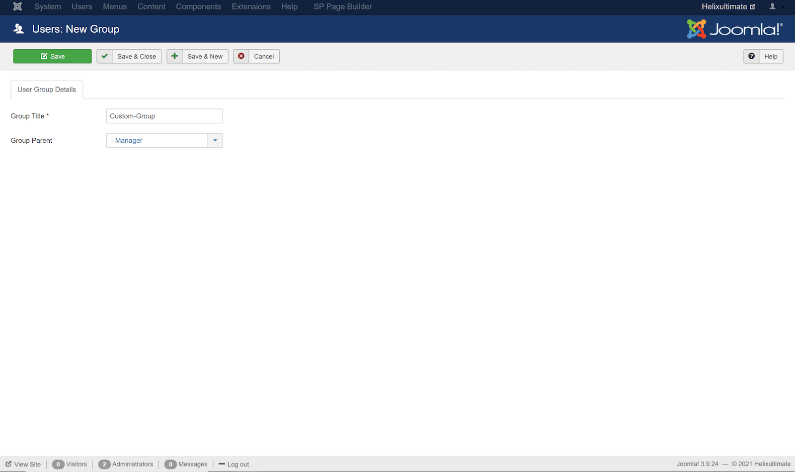 To achieve a role-based access level, we need to create user groups and define permission for users. Go to the Joomla admin panel, click on the "Users" tab on the top bar, and then “Groups” > "Add New Group".