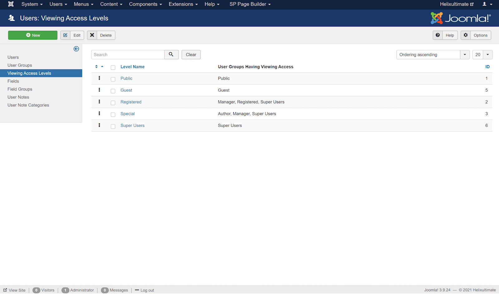 Access Levels in Joomla