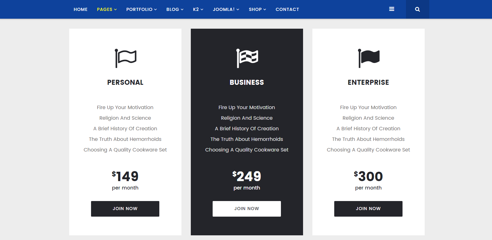SP Page Builder is used numerous times creating amazing pricing tables. These are some of the creative designs of pricing tables made with SP Page Builder.