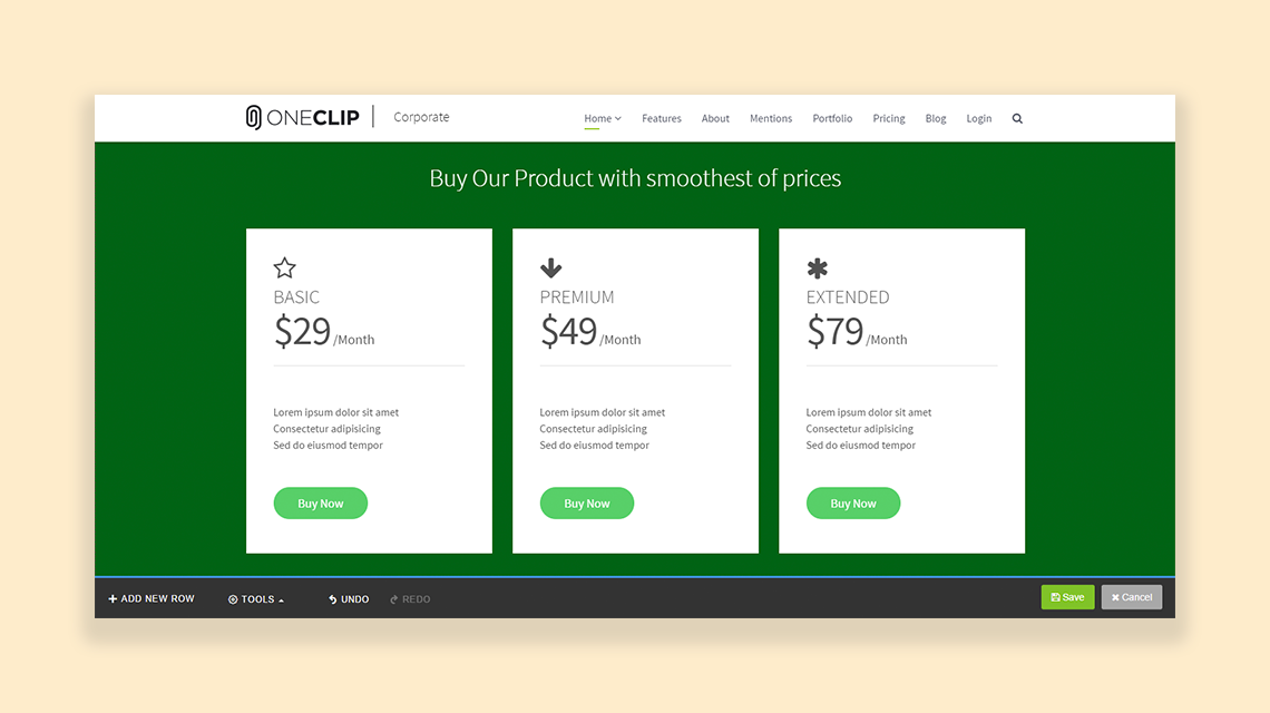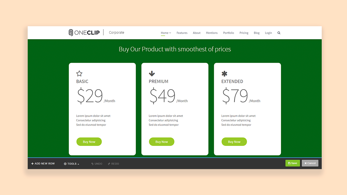 This is the final look after these steps. You now have a nicely designed pricing table with focused price, features, well crafted-design and a purchase button. Overall, everything you need in your pricing table is now present.