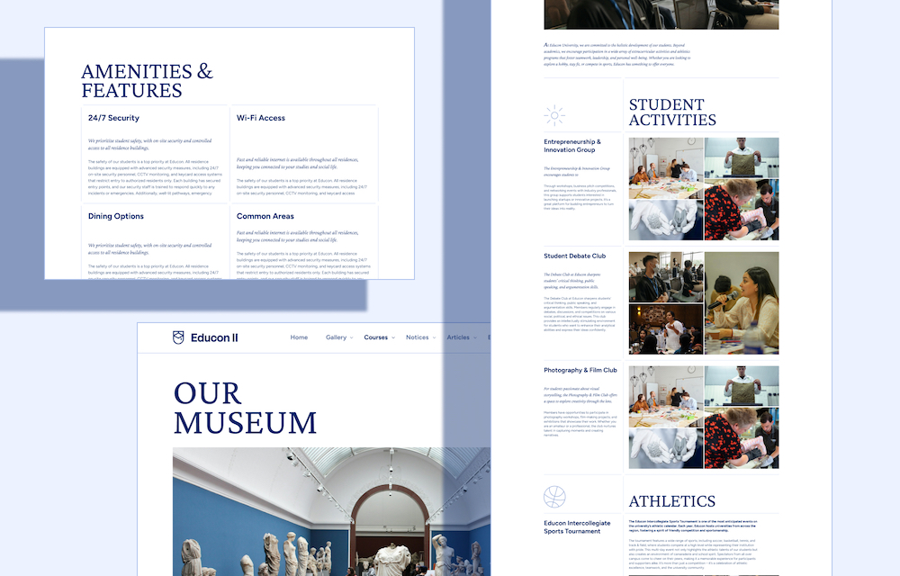 It offers a range of ready pages and customization options that allow you to create an engaging online presence that reflects your institution’s identity.