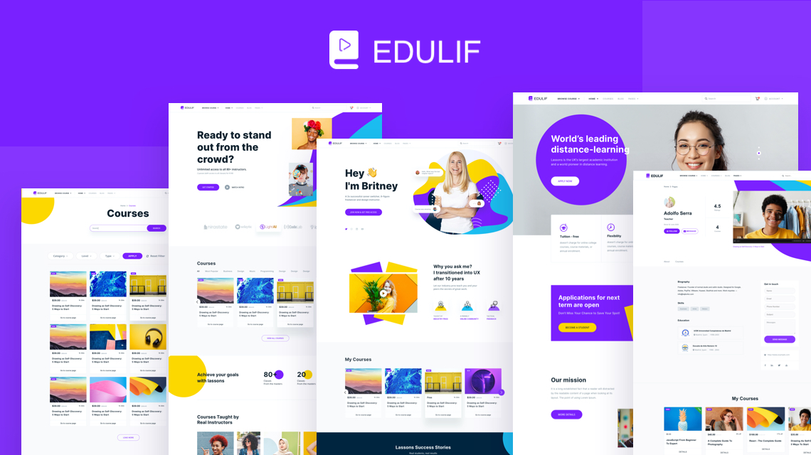 Having online courses in mind, we equipped Edulif with all essential course elements and pages. Add course descriptions, previews, and lessons. There are several pages to offer courses smartly.