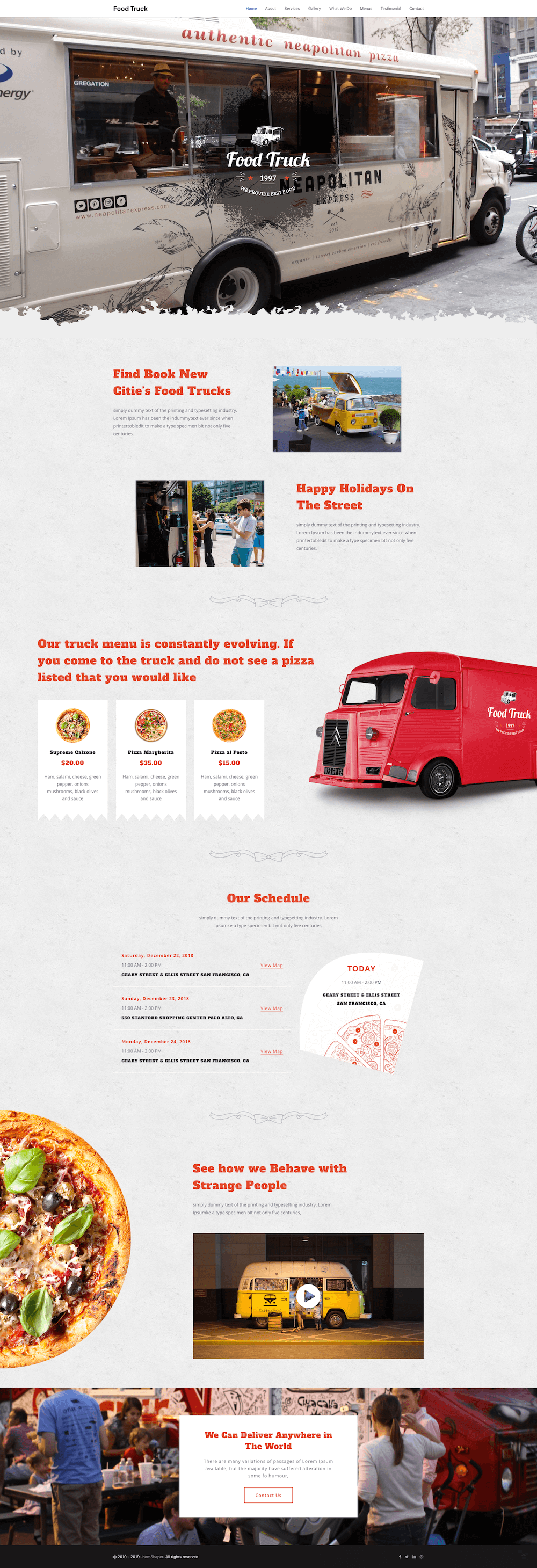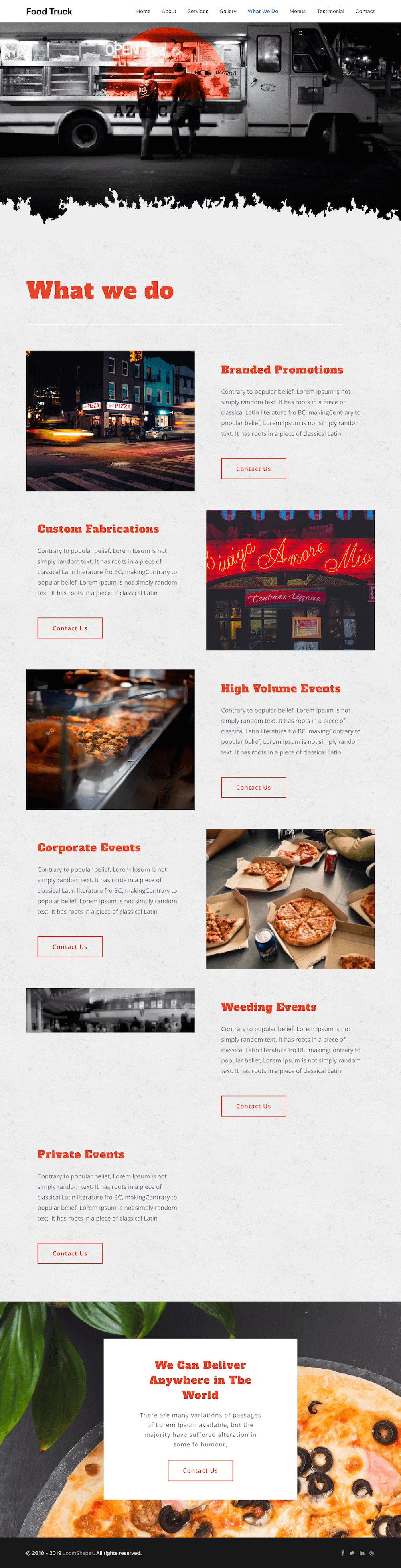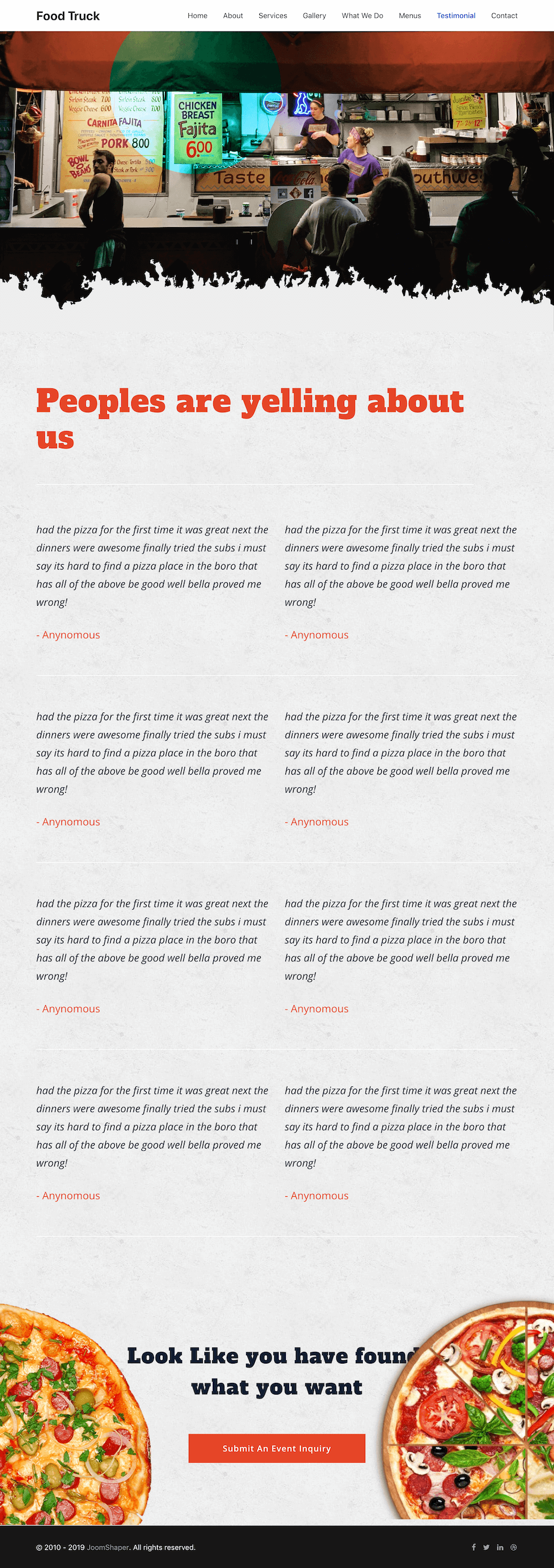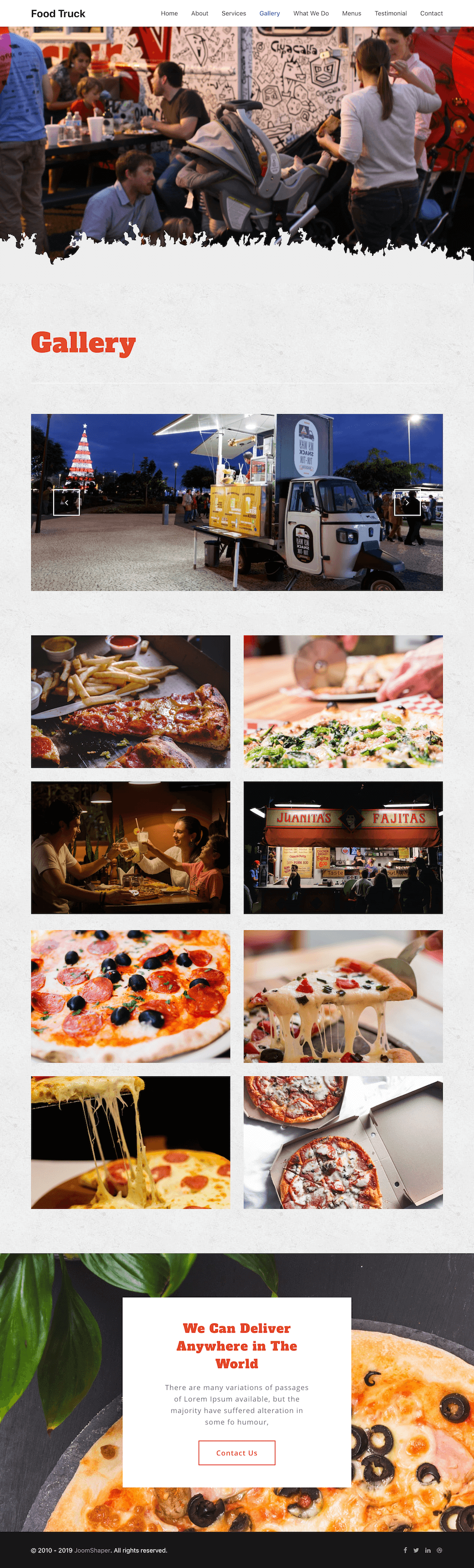A food truck business has tons of happy moments, that’s the best thing about food trucks. The happy faces of the customers will be all around, unlike the traditional restaurants. The gallery page is designed to showcase the smiley faces of these delighted customers.