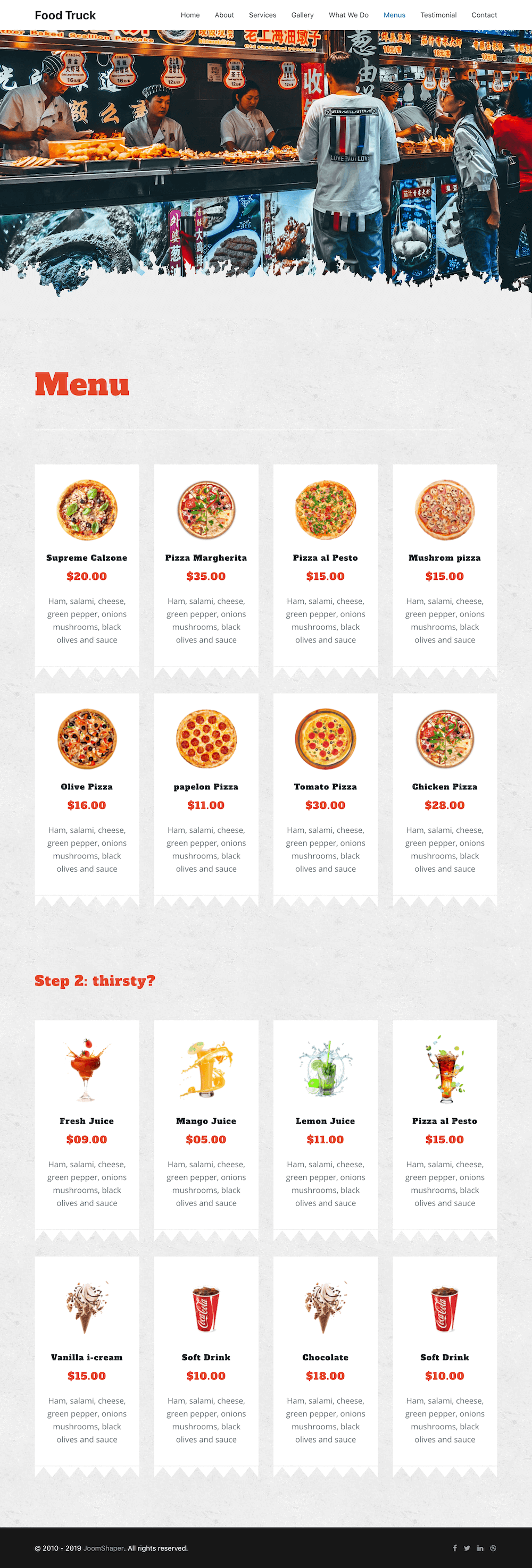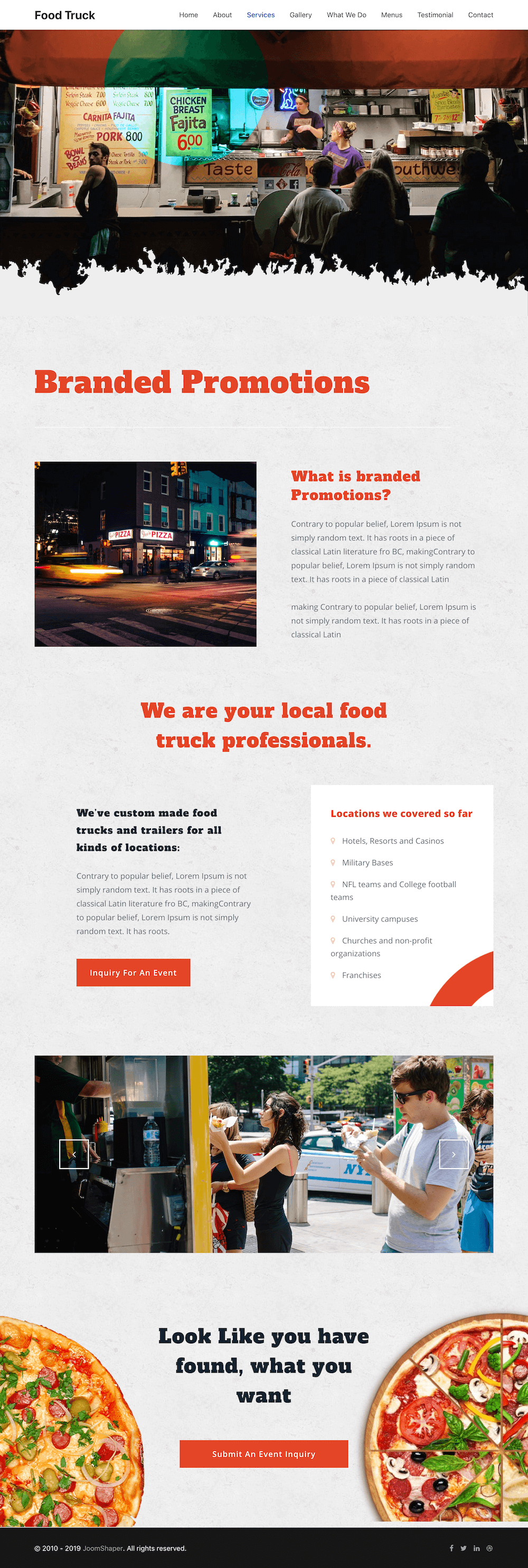 A street food business is much more than a food truck or a stand. It will be taking custom orders, catering for parties or hosting events. All these initiatives need a proper presentation which you can do using this page.