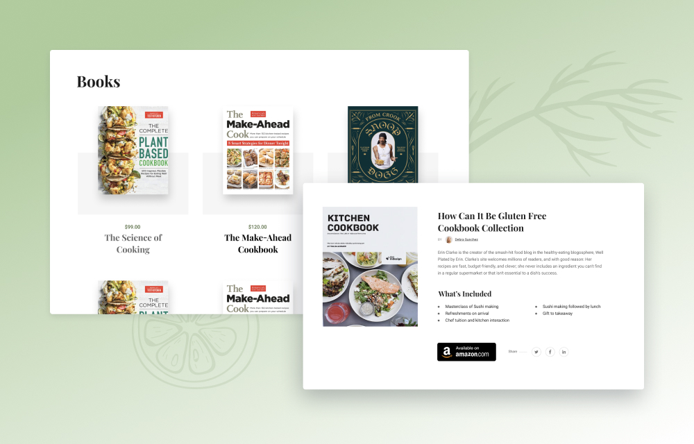 Display different recipe books and sell them online for extra income. Also, you can showcase recipes and relevant cooking books with links from different eCommerce sites and earn affiliate income. Gourmand makes it easy for recipe websites with dedicated pages. Have books in styled grid display and create a great impression