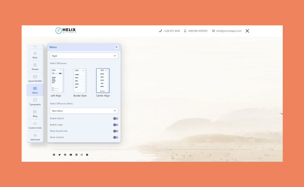 To give you the maximum flexibility while configuring your dream website we have added 3 full-screen modal variants to choose from. With the Alpha 6 release, Helix Ultimate 2.0 is more equipped to meet every preference for the header structure.