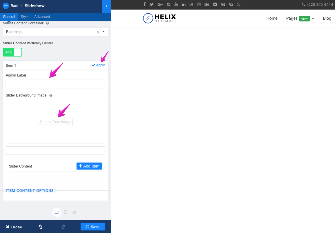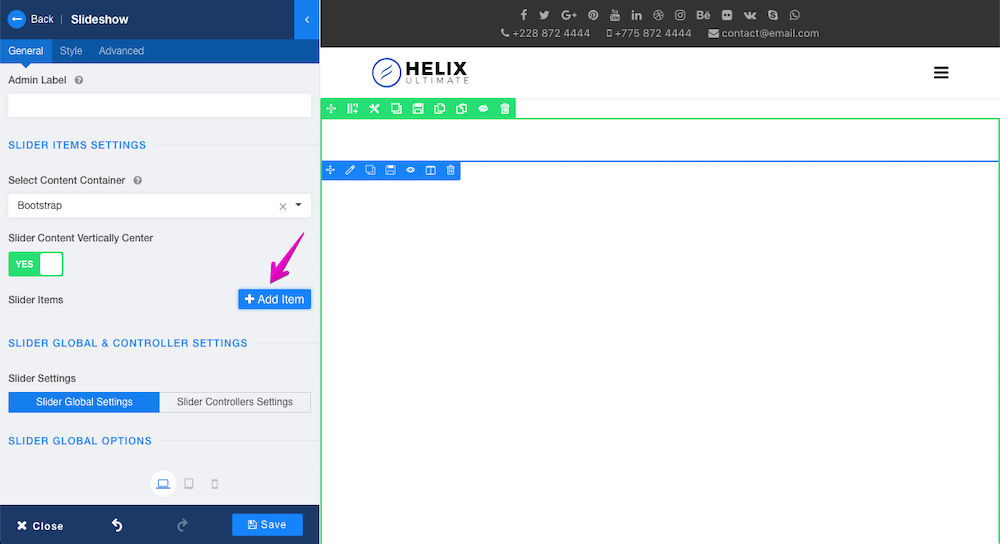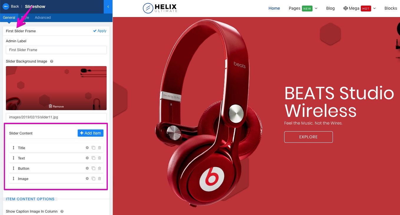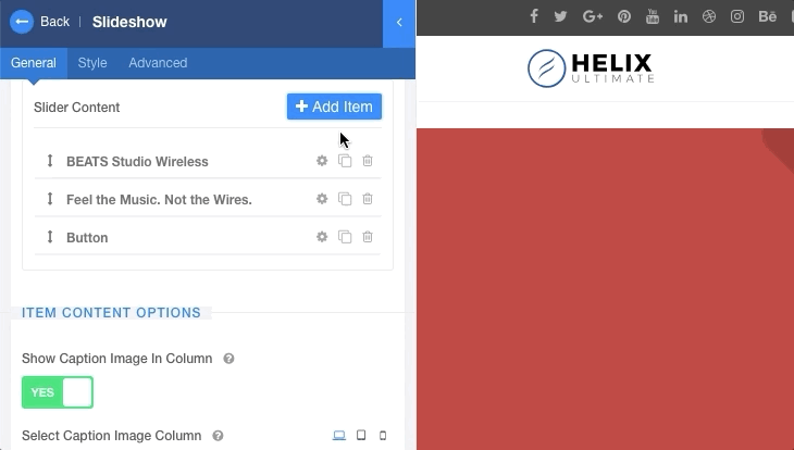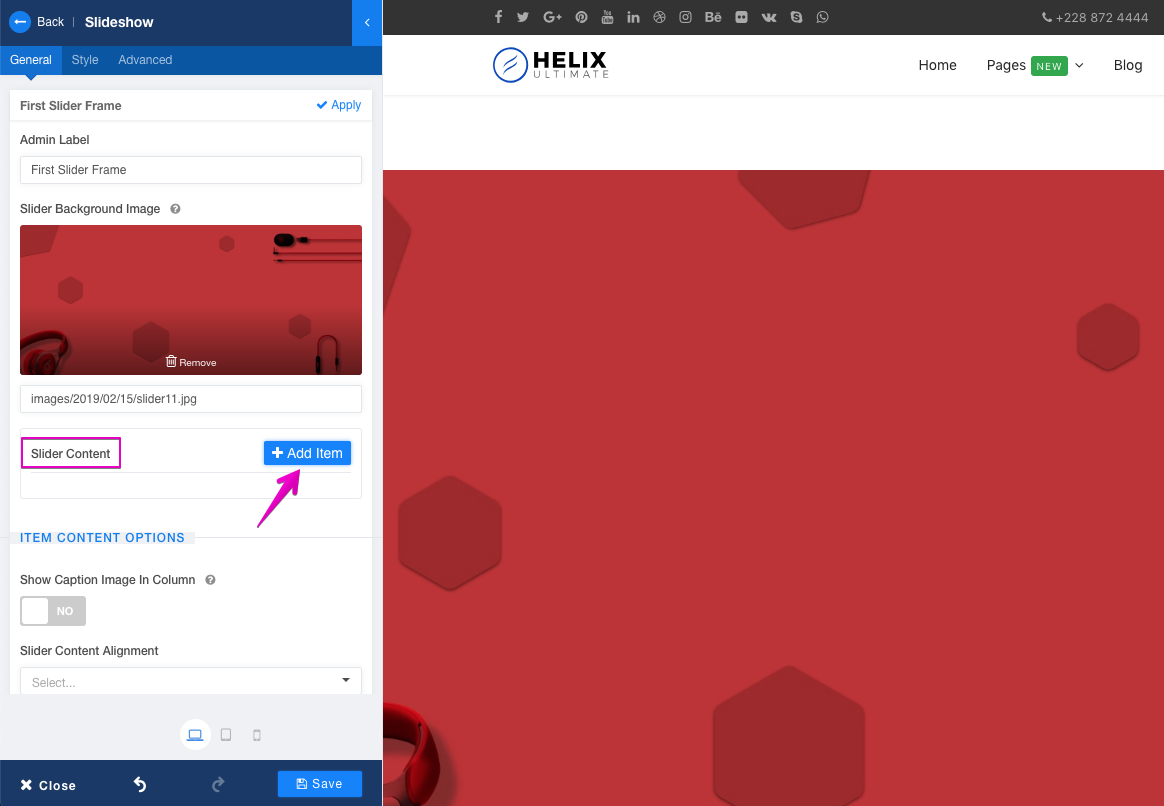 Then click on the âAdd Itemâ button right beside the Slider Content section.