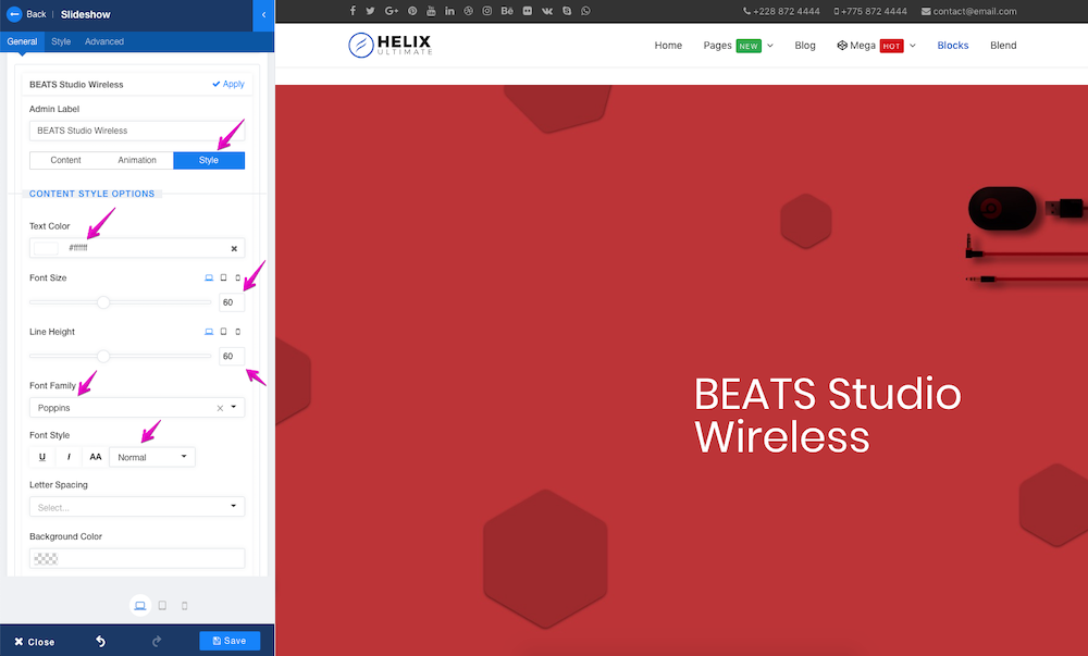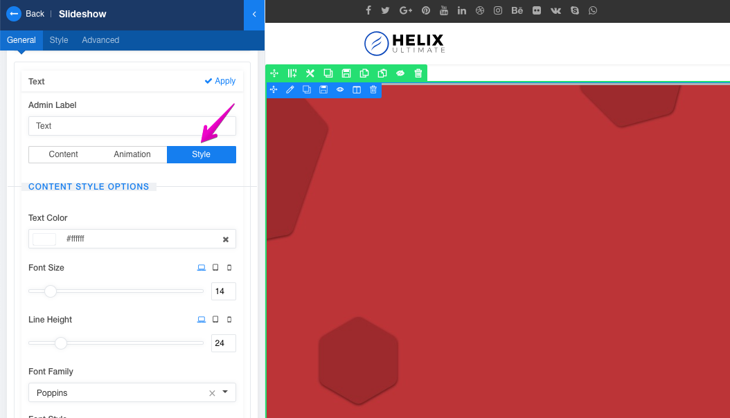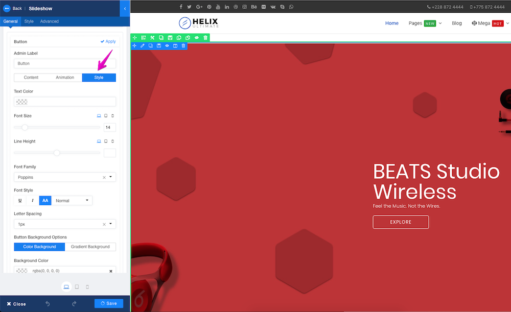 Letâs beautify the text by selecting the following properties from the Styles tab.