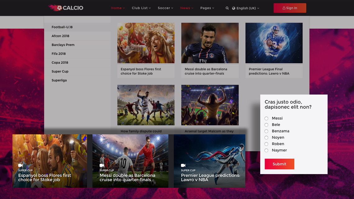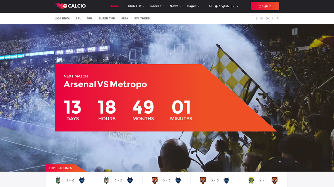 The complete soccer news/magazine, club, team and relevant website solution with full of amazing features and stunning design aesthetics.