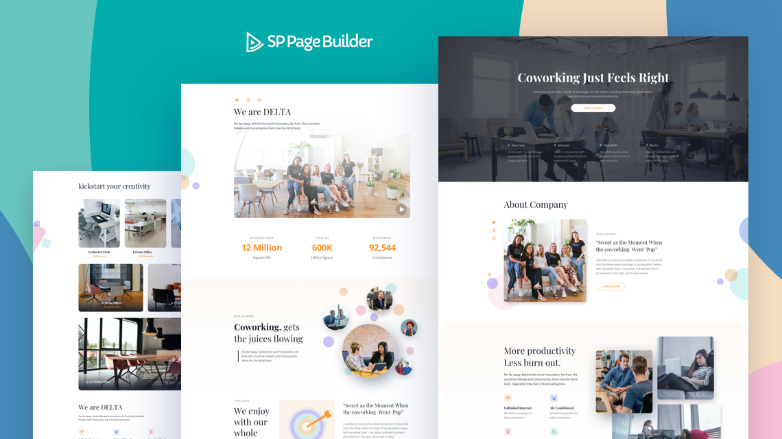 Well, you asked for it, and we’ve heard it! Today, we are presenting to you, Coworking Space, a brand new layout bundle for SP Page Builder Pro. It is a full-fledged layout pack that has all the essential pages and features to launch your site up and going in no time.