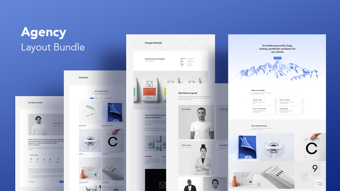 We designed the Agency layout bundle with a view to covering most of the business types in this particular niche. We made sure you have the opportunity to showcase your business portfolios, services, team members, and more on the site with the Agency layout bundle. Moreover, there are interaction effects in its inner layouts that will make your site more lively.