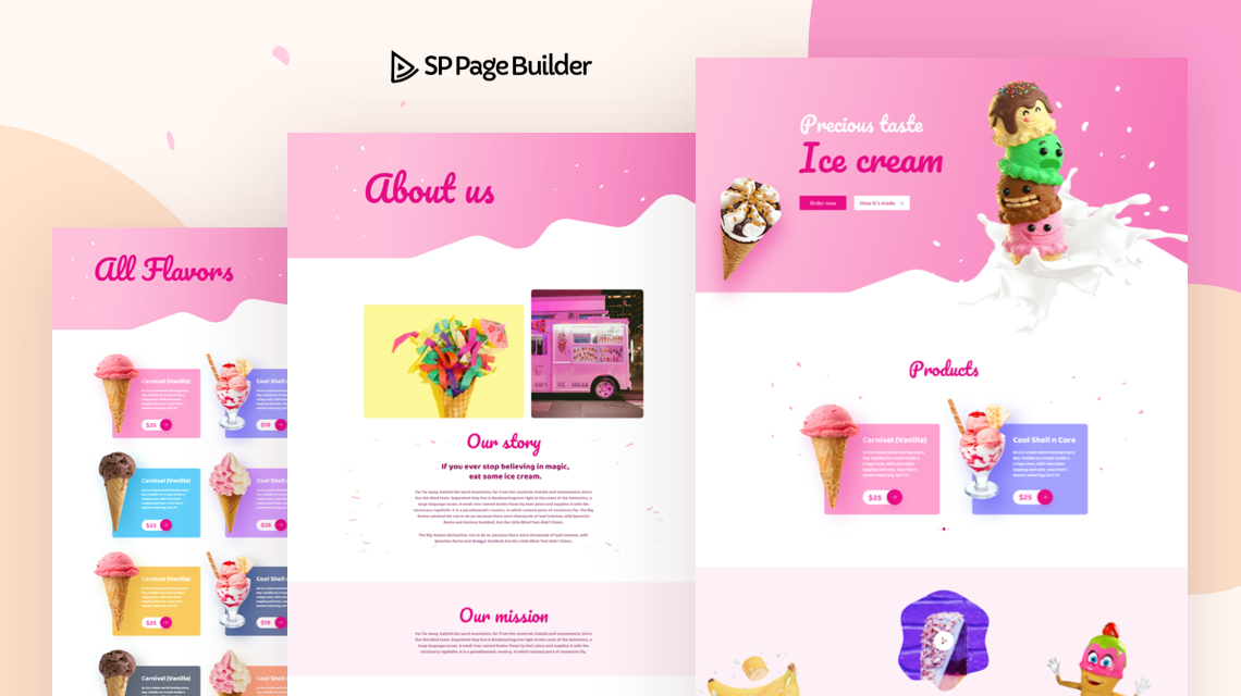 To help you spread happiness a little wider, today, we are launching, Ice Cream Parlour. A delicious new layout bundle for SP Page Builder Pro. The layout pack stacked with vibrant pages is suitable for any freelancers or shop owners to create a stunning website for ice cream parlors or related businesses. It is colorful, responsive, and has all the necessary features to create a fun space online and boost your business.
