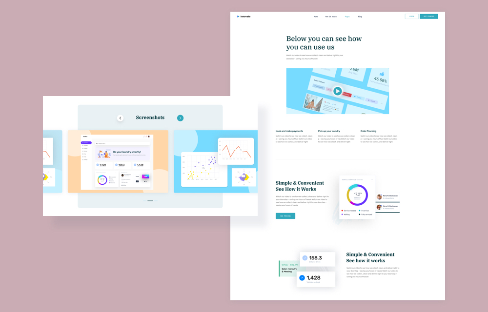 Innovate gives you a dedicated page to let your users take a virtual tour into your product. Add videos, break down steps, and share screens for potential customers to have a complete idea about your product. Showcase visuals of your product in sliders for a better view. Make this page conversion-friendly with catchy CTA buttons.