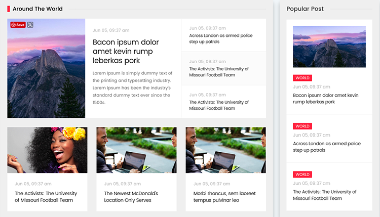 The NewsKit template comes with two homepage layouts. The both layouts developed with utter care and packed with hundreds of essential features. The home layout one starts with a nice a slider, displaying all the trendy articles. Then there is an artwork of article slider addon displaying all the featured articles. This design also comes with a watch video section where the recent news videos are displayed. The second layout comes with a card design of articles and all other amazing design variations.
