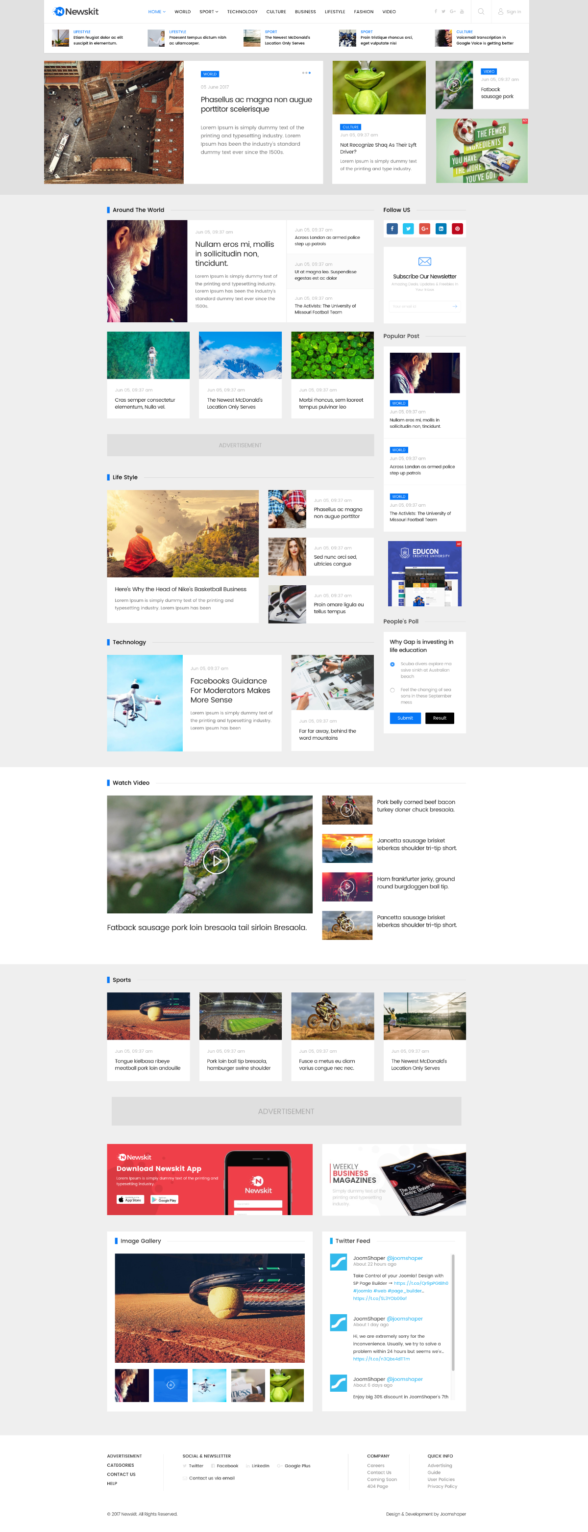 NewsKit is developed on top of the best Joomla template framework Helix3, and the template is powered by industry leading drag and drop visual page composer tool SP Page Builder Pro. There are two homepage layouts that will bring flexibility to your desire. We have developed modern and advanced addons of SP Page Builder for this template like Thumb Slider, Article Slider, and the Heading addon. The SP Poll component lets you create polls of any topic or event on your news site. Also, the template comes with SP Tweet module that allows you to display your Twitter feed on your web pages.