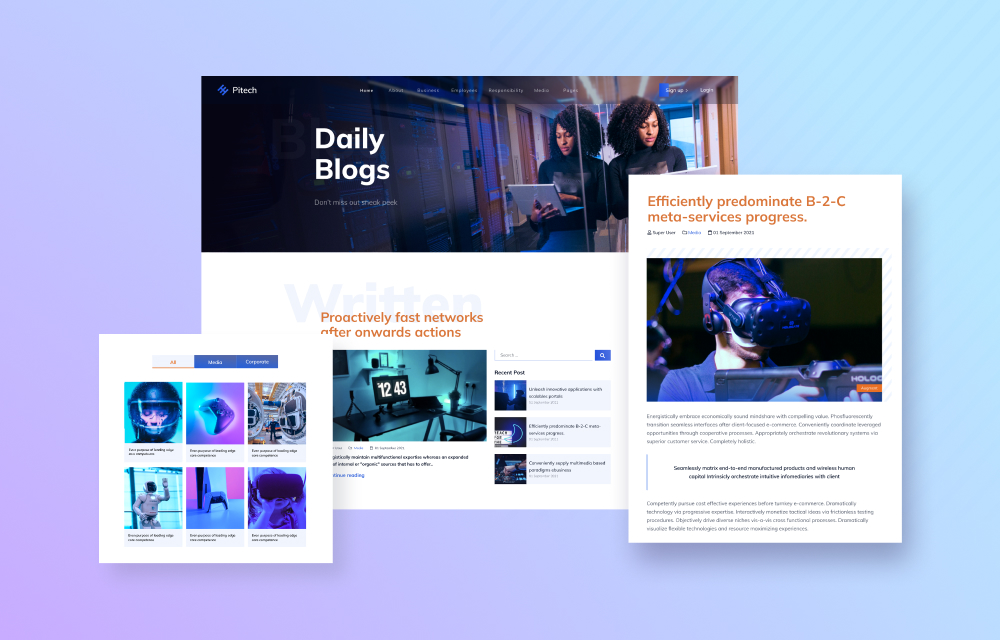 Want to keep your audience up-to-date? Publish company announcements and cover industry-related topics on your blog. Convey brand messages, guidelines, tips & tricks aesthetically. Pitech gives you a clean and readable single blog page including a banner and more.