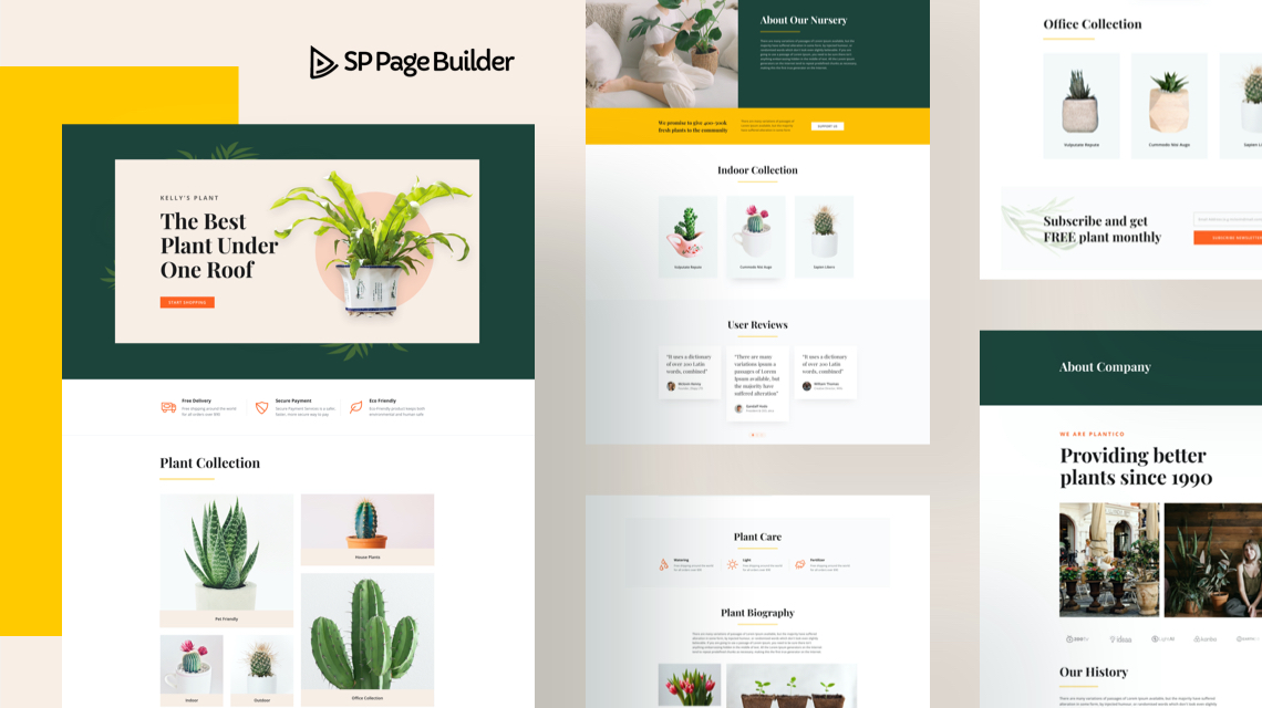 Demand for houseplants is booming, and so are the plant shop startups. This is a great opportunity for you to start your own plant shop business or create websites for other plant shop startups. Well, you guessed it right. Today, we proudly present to you Plant Shop, a free layout bundle for SP Page Builder Pro. It’s clean, modern, and has all the necessary pages, to make your site stand out, catch the eye of fresh and existing customers and skyrocket your business well beyond.