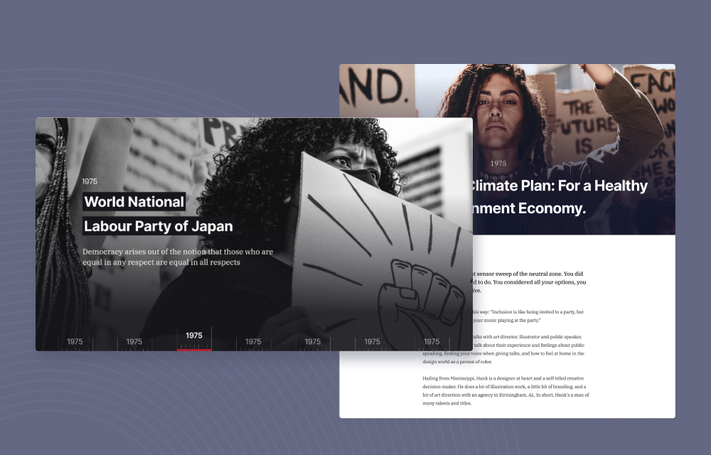 PoliticalParty: Describe your party, feature leaders, share moments, describe historical events, and have facts and stats on a beautifully designed About page.
