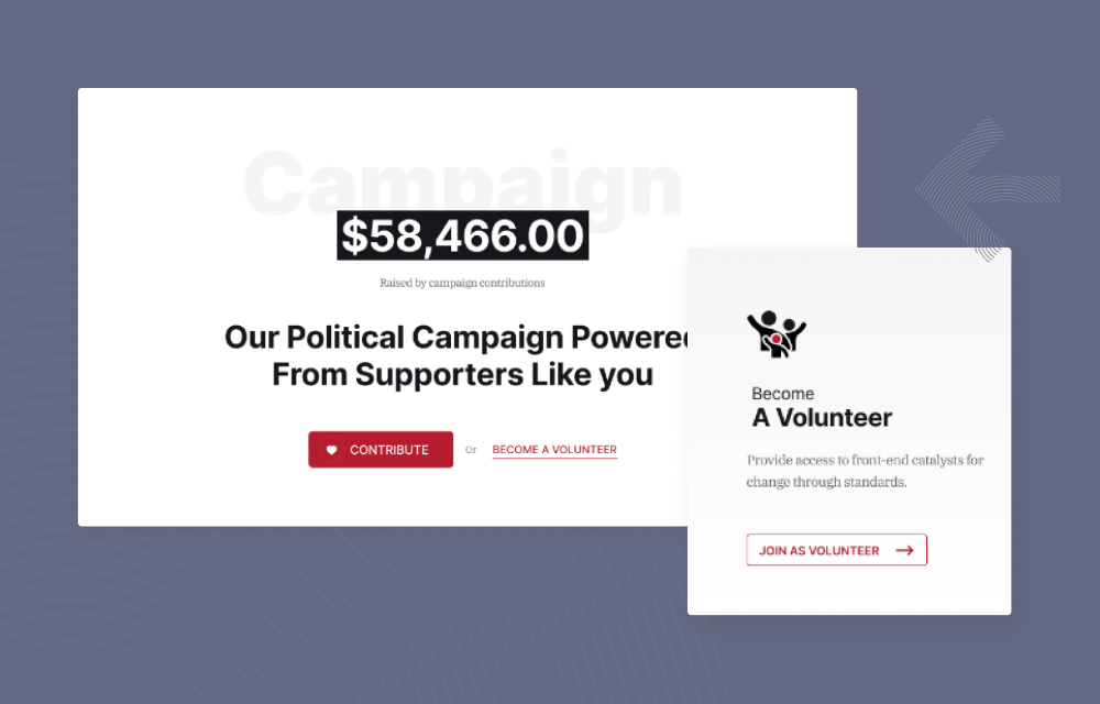 There are supporters out there to be a part of your campaigns. Give people the right opportunities to be volunteers and contribute to your party. Get a nice registration page for interested volunteers. Also, have CTA buttons on different pages to ask for volunteerism and get them registered easily.
