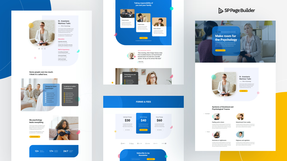 When it comes to website design, color-scheme plays a crucial role to grab the attention of ideal clients, influence their emotions, and provide them with a sense of reliability. With the perfect color-scheme and amazing features, the Psychiatrist pack comes with the following pages to build a striking therapist site within minutes.