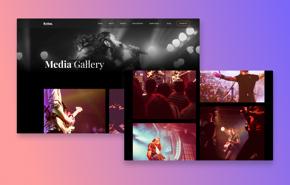 Rythm makes it simple for you to showcase your music band, events, tours, and remarkable moments. It comes with a wonderful gallery to frame all these moments and display them for your fans and followers. You can easily add photos to create memories with your band and hold them in a smart gallery.