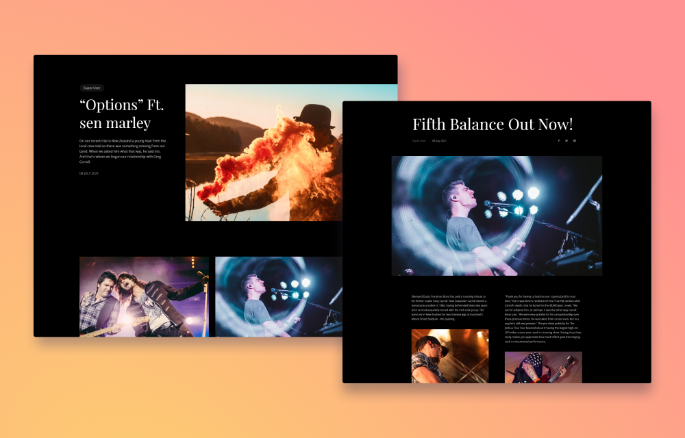 Talk about your albums, concerts, other musical events on your music blog. Let people know about your upcoming album, next concert, and other musical events in announcements. Tell background stories, cover fans. and do many more on your blog. Showcase news and stories from the blog on other pages.