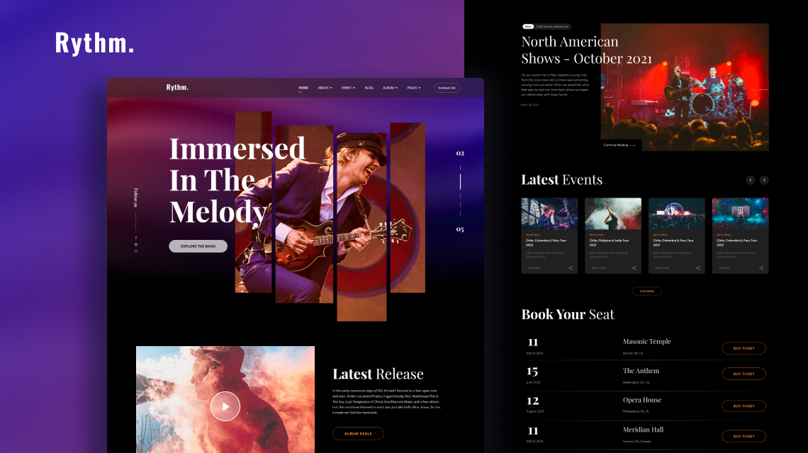 Rythm has a modern design and presents your music bands perfectly to its fans and followers. It is fully equipped to help you create a website to promote your music talent worldwide. Rythm is highly customizable and has everything inside to create a great impression on your fans online.