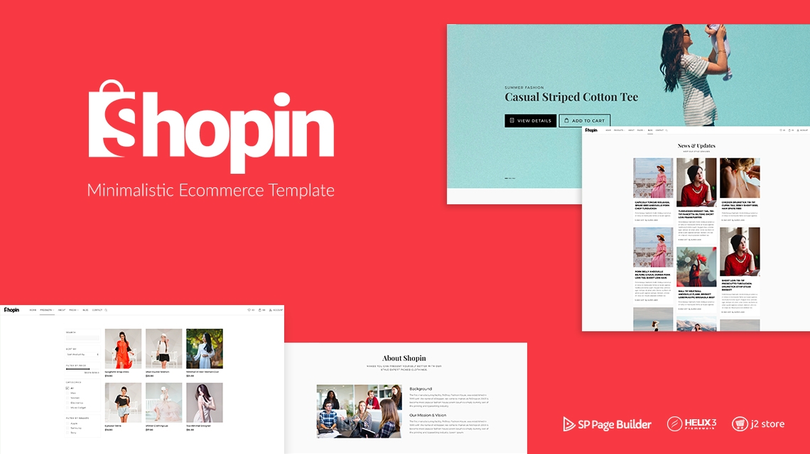 Shopin comes with J2Store eCommerce solution and SP Page Builder Pro. Building an eCommerce website with Shopin will be a high five experience because of its stunning design and all rounder eCommerce features.