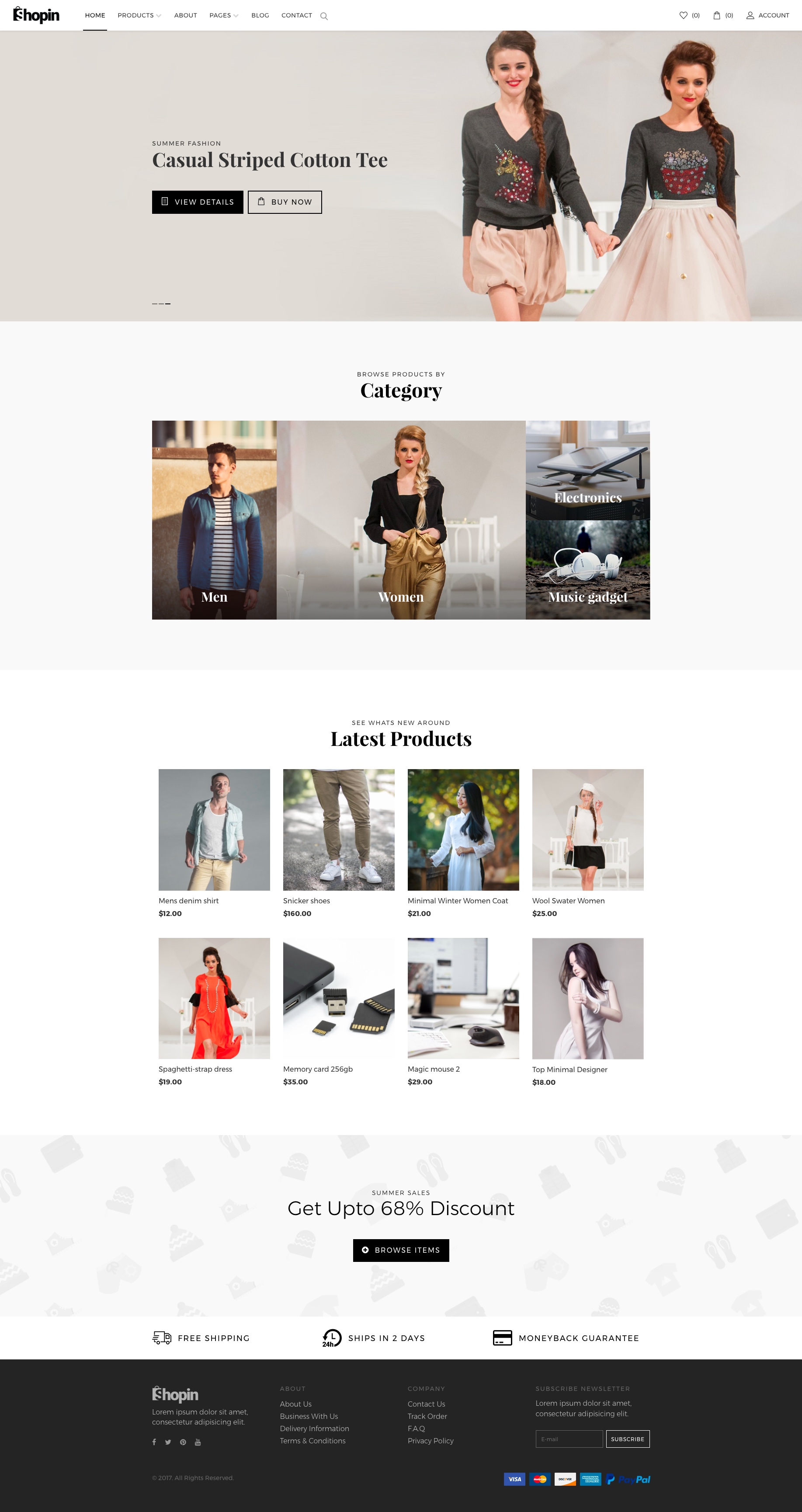 Shopin is a minimalistic and flexibly designed responsive template for eCommerce startups, companies, vendors and all relevant professional business agencies. Its well-researched design and quality features are totally evolved on the basis of the ensurance of attractive product display and categorized product representation. Shopin design style and user experience will ensure the maximum product outcast which is really crucial for any eCommerce business peddler.