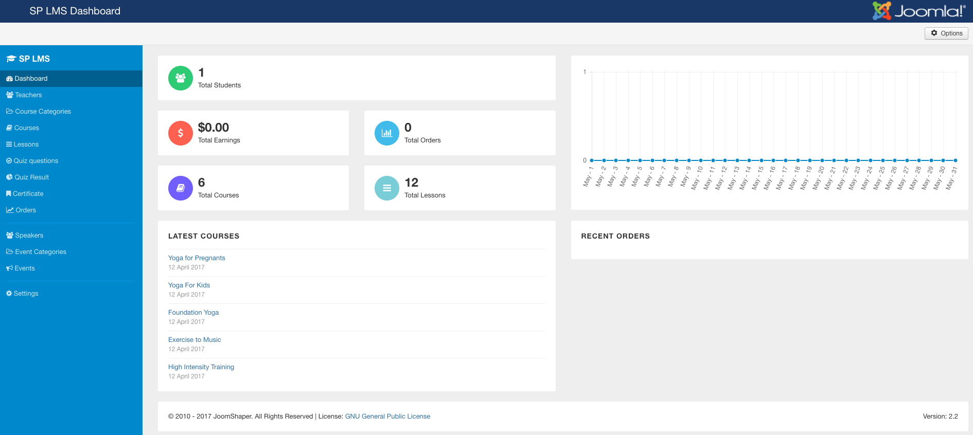 JoomShaper's SP LMS extension is pre-packaged with Yoga.