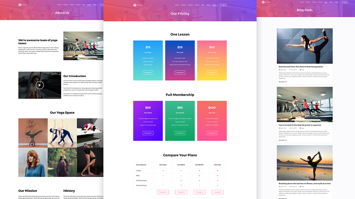 Yoga comes with several inner pages built inside the template.