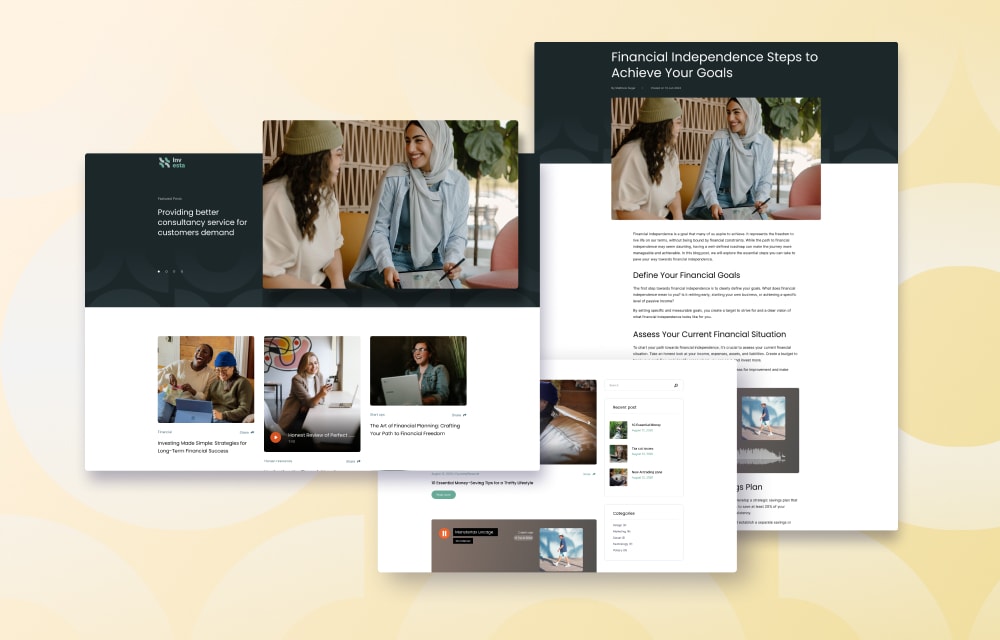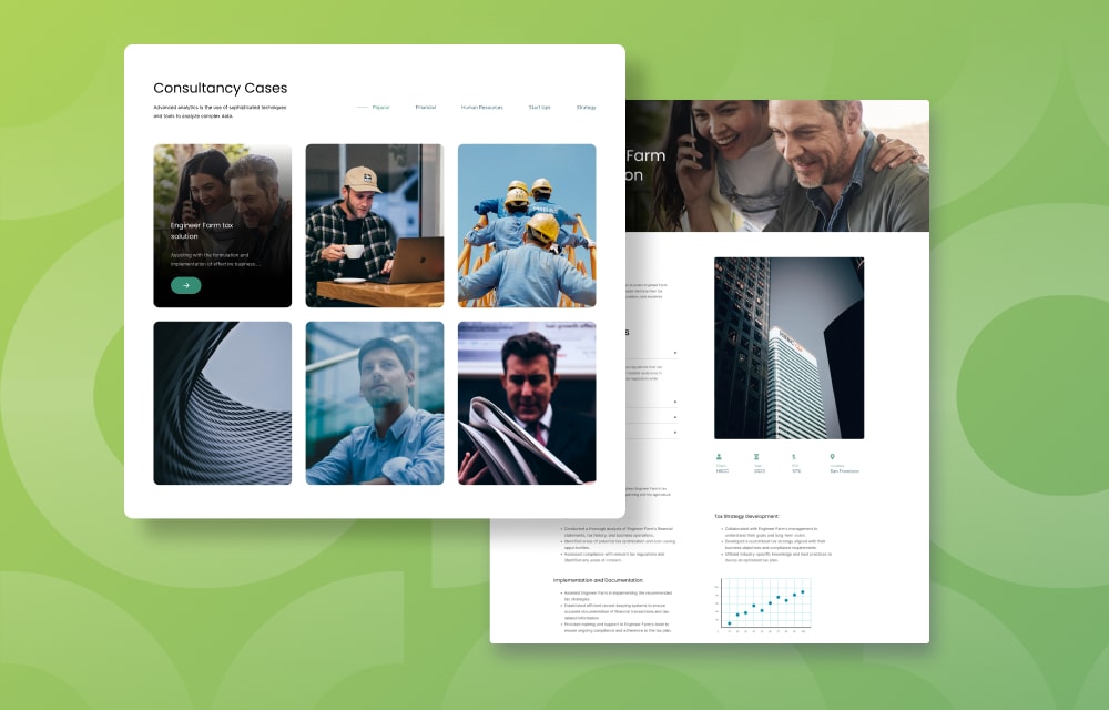 Consultancy: A modern and elegant layout design, best suited for small businesses, consultancy firms, and investment companies.