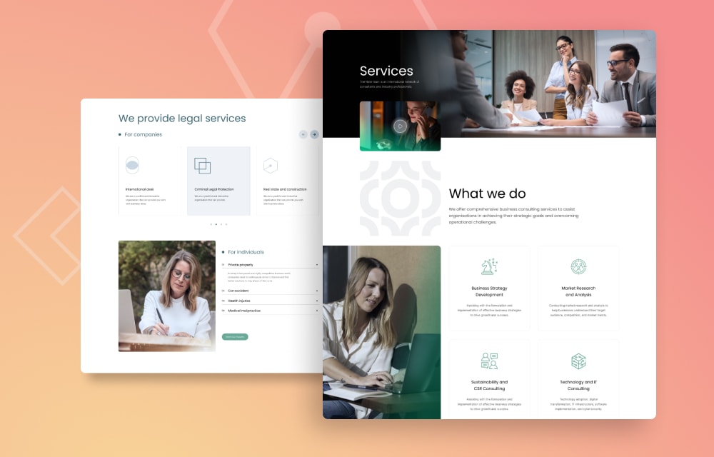Law Firm: A simple, sophisticated, and impactful home page design perfectly tailored for your legal firms and law businesses.