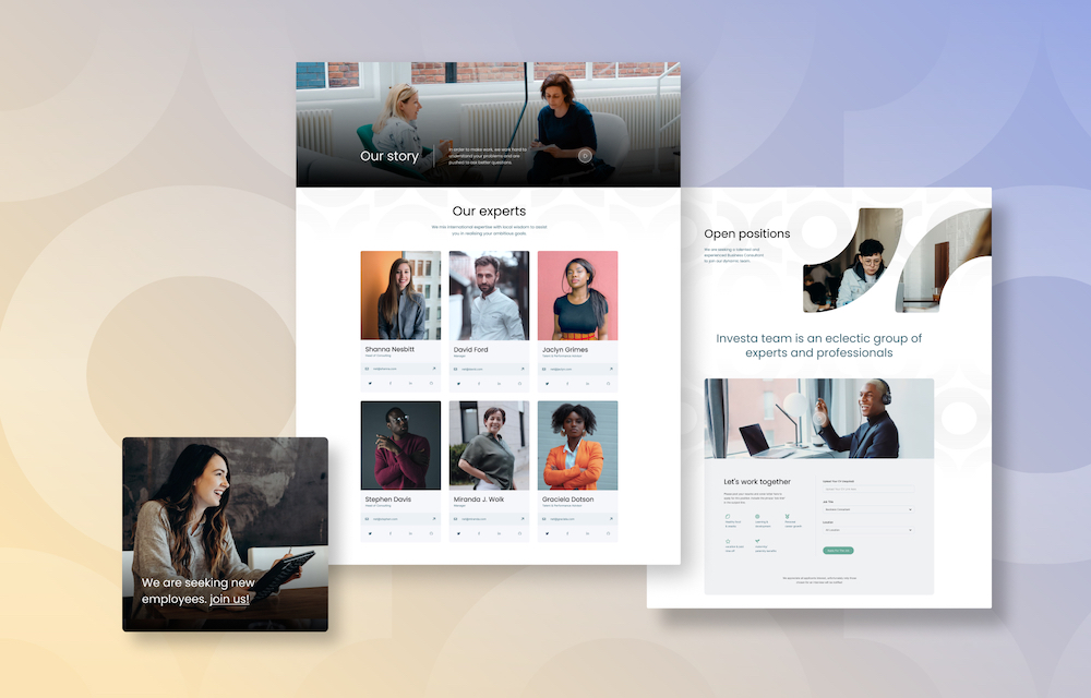 Investa comes with individual pages for Team and Career, with two variations for Team pages to let you present our team members exceptionally. The Career page remains modern and minimal with job filters and an impressive hero section.