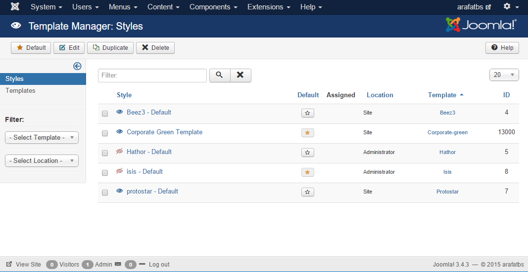 In the control panel, there is a Template Manager option from where you can change and customize your site's template.