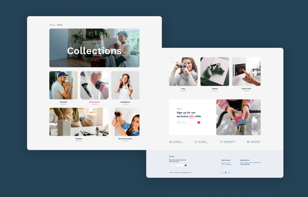Minimalist Hero Variation: This Home Page variation is a sleek, focused design emphasizing a single product. The hero section takes center stage, featuring a high-quality image that highlights the key features of the showcased gadget. This variation is perfect for brands that want to make a bold statement about a flagship product.