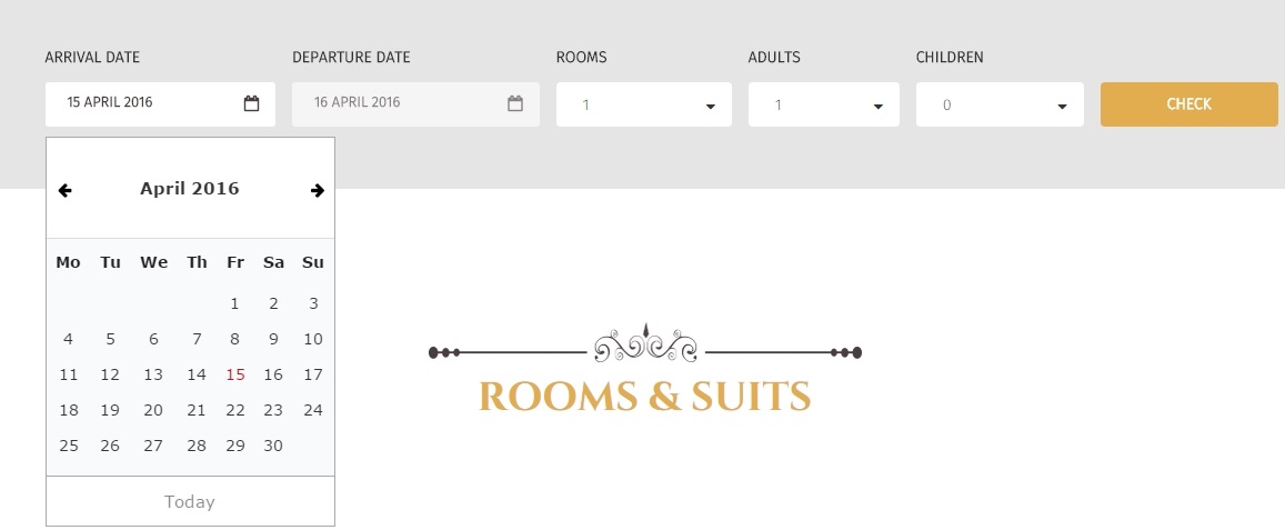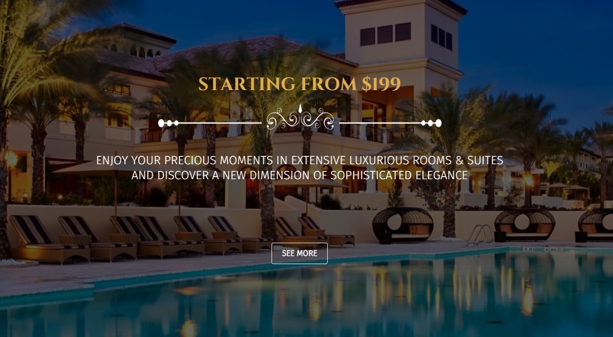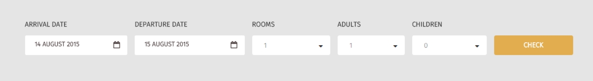 Right below the slider, a search and filtering system is given to find the available facilities during a certain period. Here the customer needs to input the sign-in and sign-out dates, number of rooms needed and number of persons attending the tour.