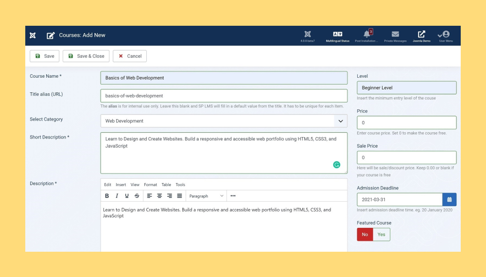 Joomla 4 is just around the corner. Your favorite eLearning course builder on Joomla, SP LMS is now compatible with Joomla 4 beta 7. Now, you can enjoy the features of the new Joomla version along with your favorite SP LMS component.