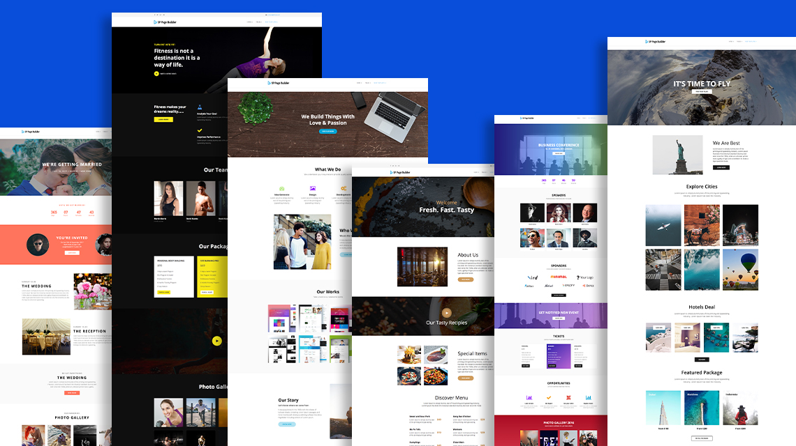 SP Page Builder comes with built-in template layouts that let you launch a fully designed website in a single click. You can choose any of these preloaded templates and use on your site in seconds. There have been 11 pre designed templates in the page builder until now, and today’s update adds 6 more. The new built-in templates are Agency, Event, Fitness, Restaurant, Travel, and Wedding. So now you get a whopping 17 preloaded templates inside SP Page Builder that will incredibly save your money and time.