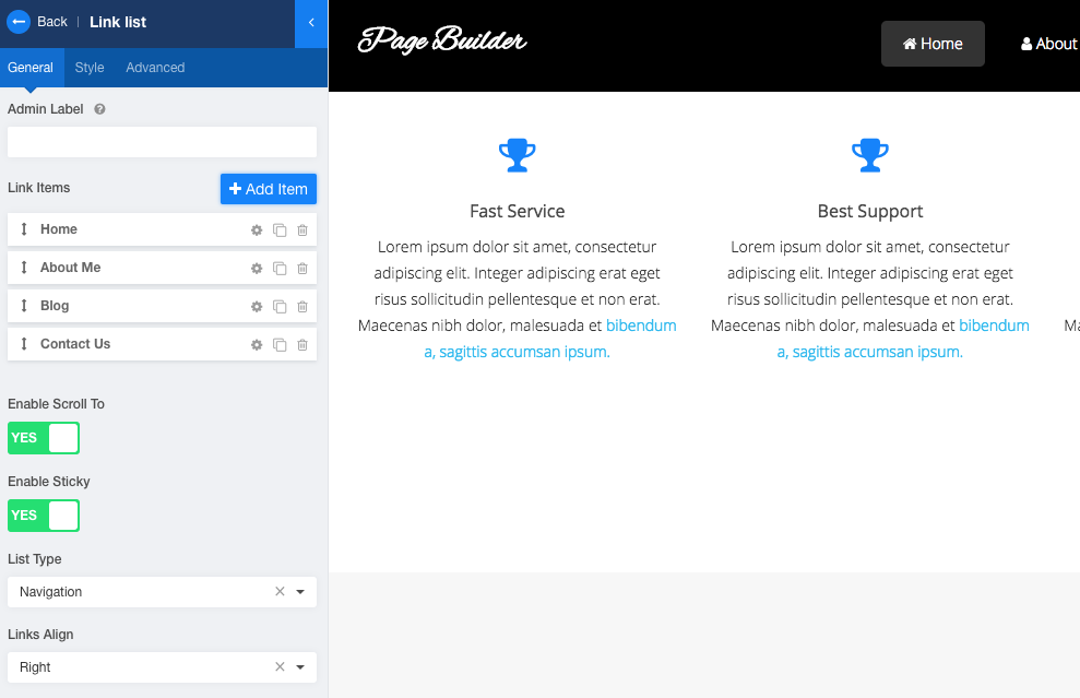 The brand new Navigation addon is introduced in SP Page Builder 3.1 which allows you to create a sort of (navigation) menu with custom links and icons before titles. This addon has features to be "Sticky" and to use "Scroll To" and can be used as a typical navigation, with chosen alignment (left, right or center) useful for RTL languages. Great solution for onepage type layouts, especially for landing page projects.
