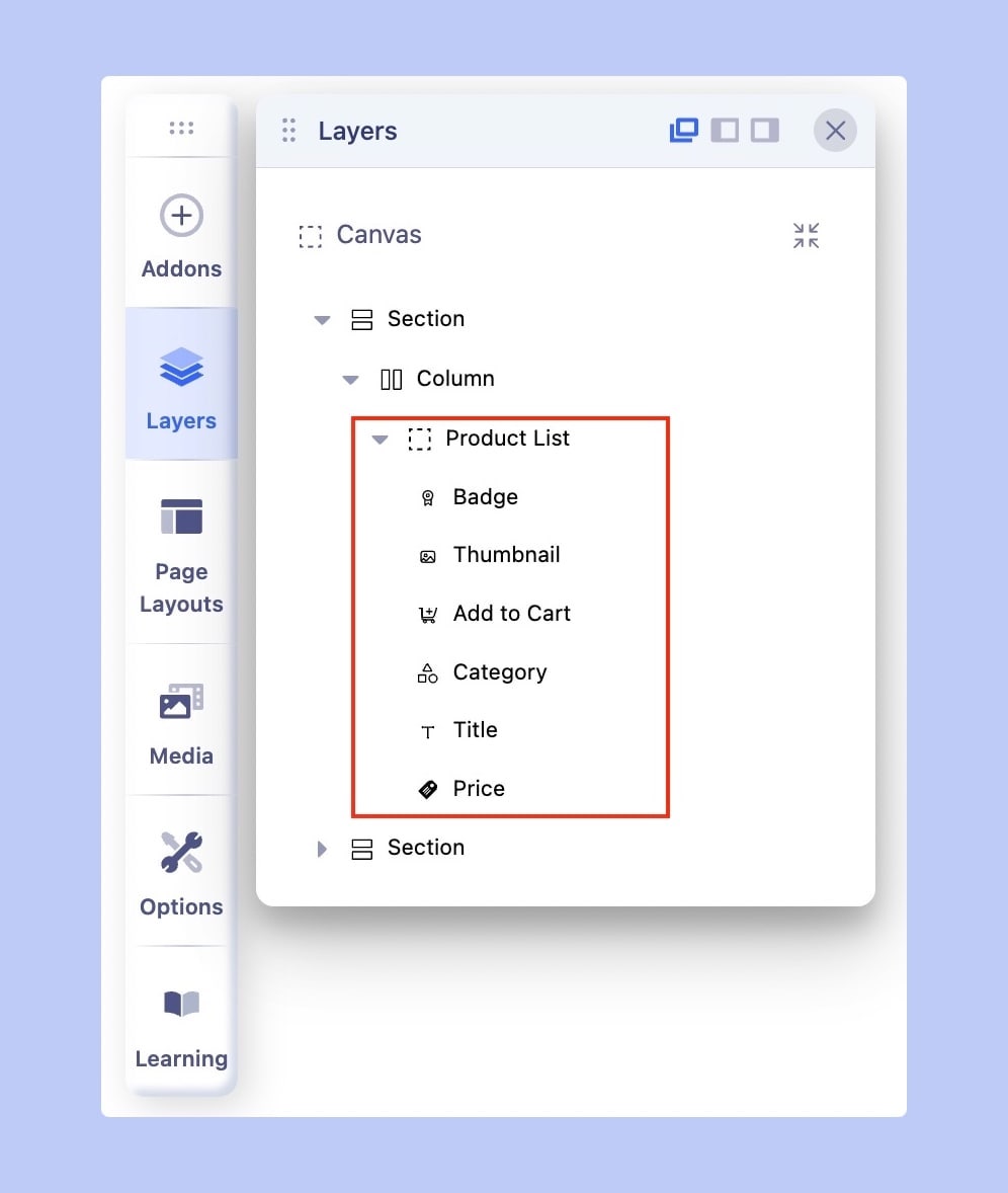 The Product List addon now comes equipped with layers panel functionality, giving you even more control and flexibility when designing your online store.Â