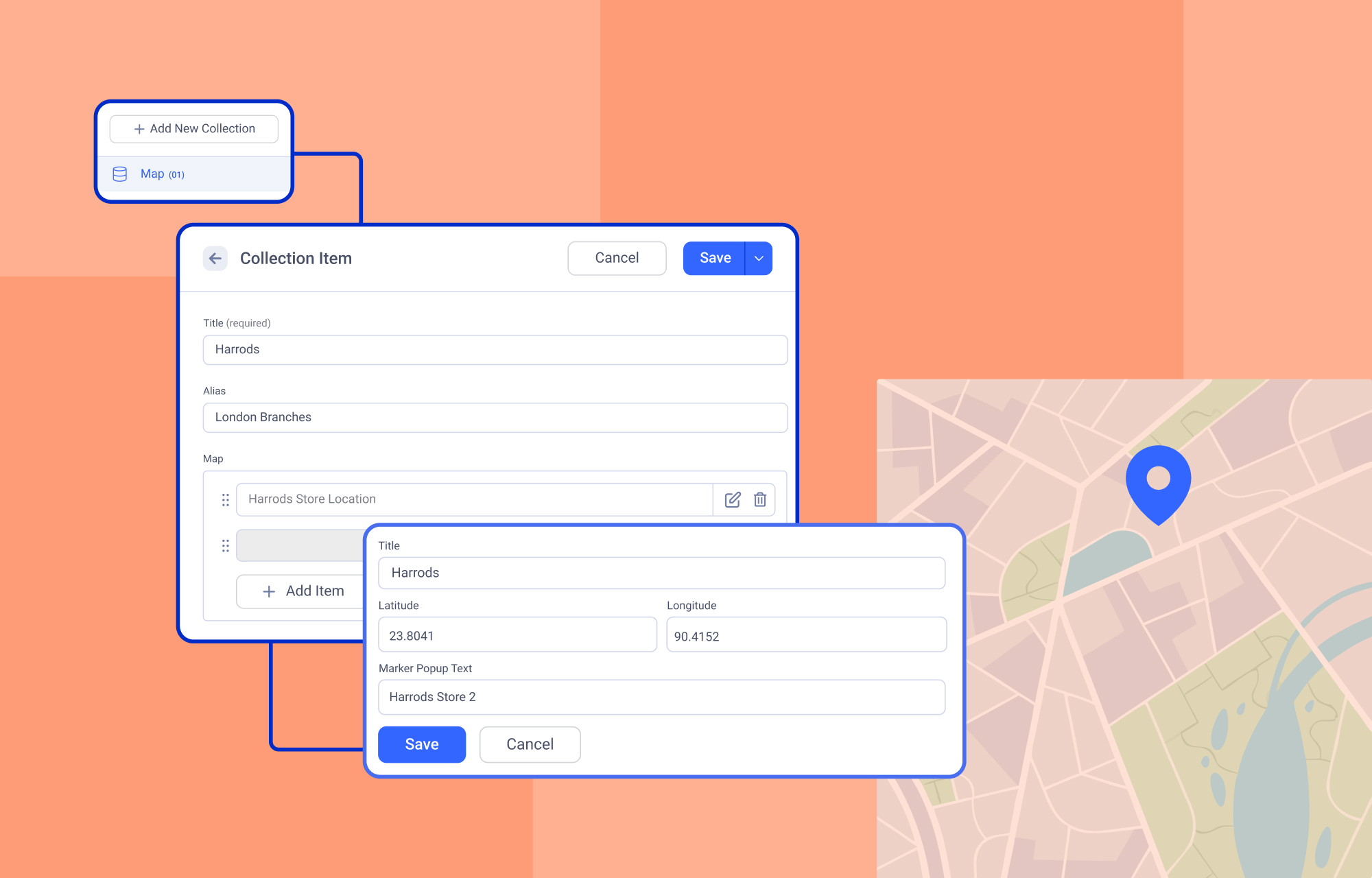 Single or Multiple Locations Per Item: Each collection item can hold one or multiple addresses, giving you the flexibility to display multiple properties with several locations.