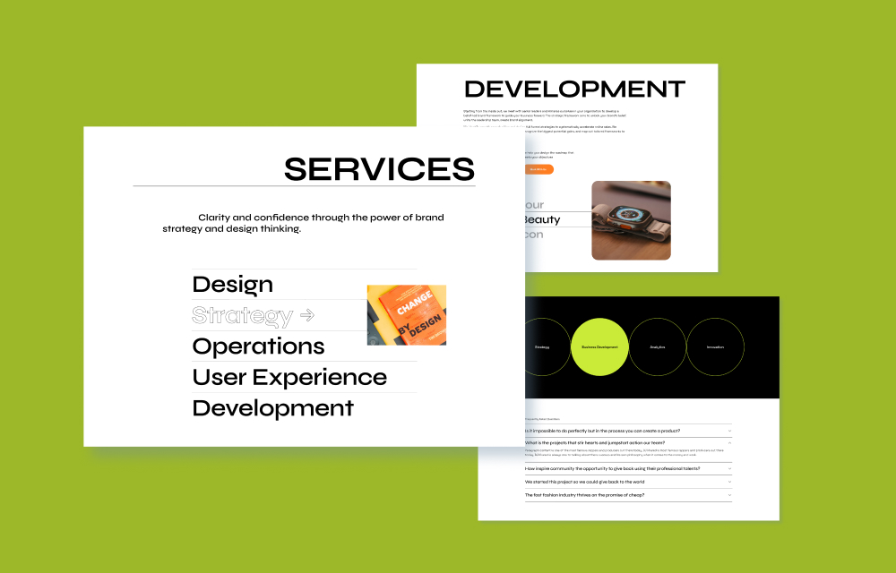 Smartly list all the services your business provides, and talk about each of your services in detail, using high-quality visuals to explain your offerings.