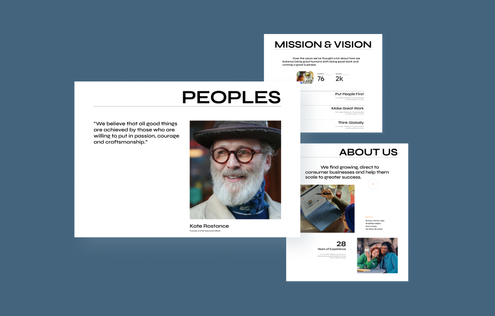 The About page allows you to share your unique story giving visitors a better understanding of the company's values.