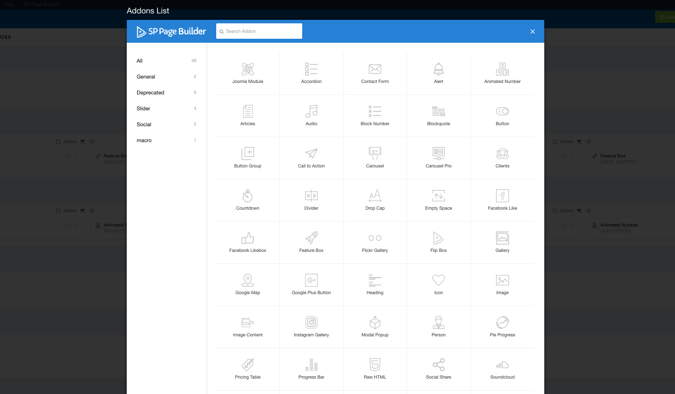 With the charm of SP Page Builder in Corporex v2.0, you get a collection of magical addons that will enhance your web development experience like never before. Previously, in Corporex 1.0, the feature areas, or simply, the page elements were displayed using Joomla modules, where you had to do a lot of works to publish and edit a module for showing a particular element. But now, with the page builder addons, you can easily add, edit, duplicate and reposition addons in a glimpse. There are 49 addons waiting for you in the Corporex v2.0 package.