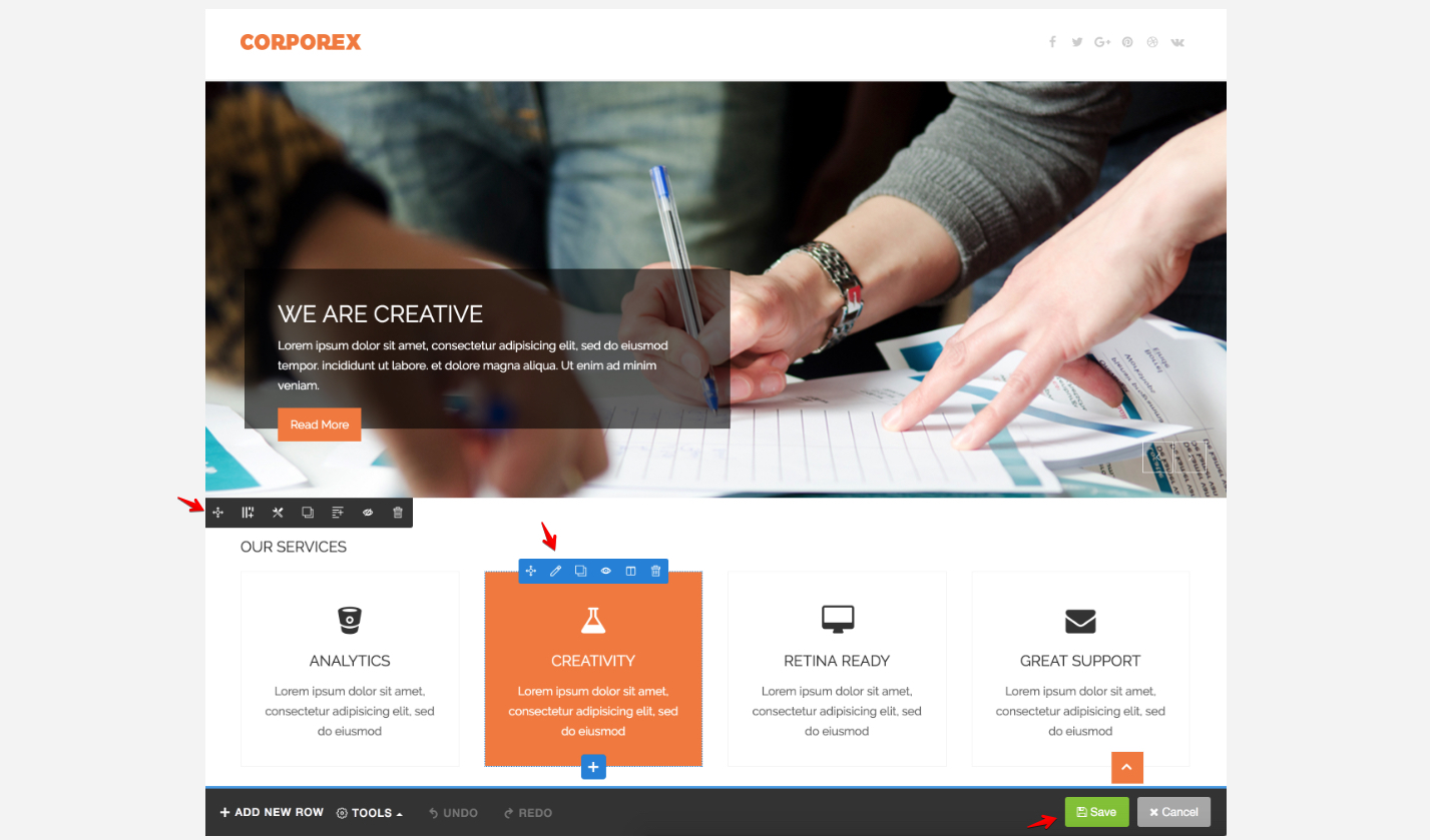 Corporex v2.0 comes with SP Page Builder, which was not available in the initial release of the template. This is a really big upgrade, thumbs up to our developers! Corporex v2.0 is powered by our revolutionary SP Page Builder 2.4.2. The best ever Joomla page builder offers you the ability to launch a website in a few minutes without having to code a single string of code. You must like the live drag and drop frontend page building functionality of the page builder. Development on!