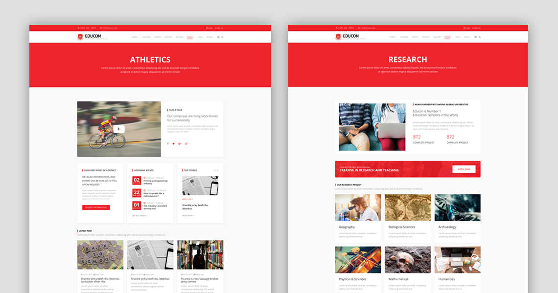 The other two pages are titled as ‘Athletics’ and ‘Research’. The Athletics page displays the extra-curricular activities and relevant course contents. The Research page is all about your institutional research.